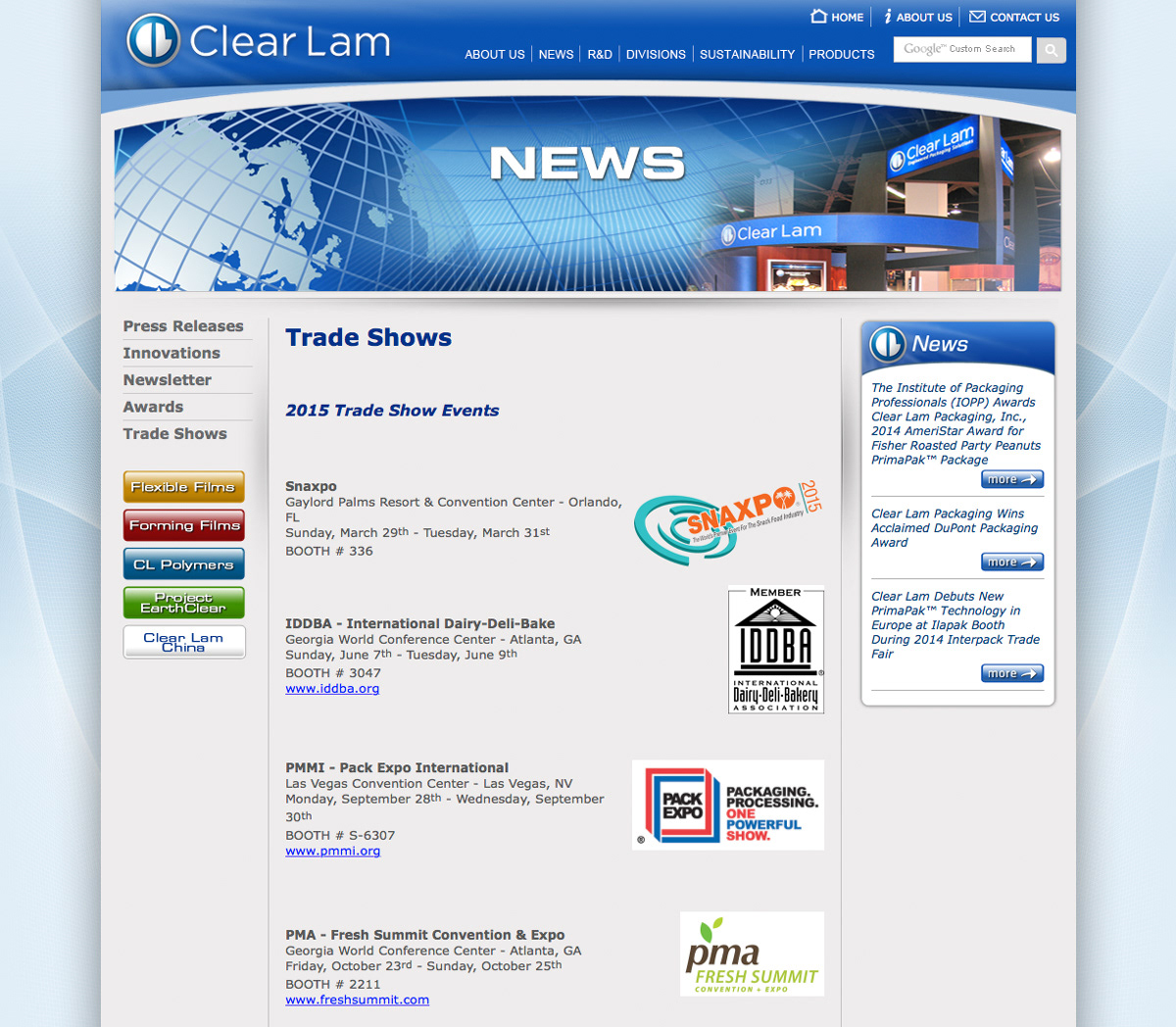 Packaging Initiatives Division Website Landing Page